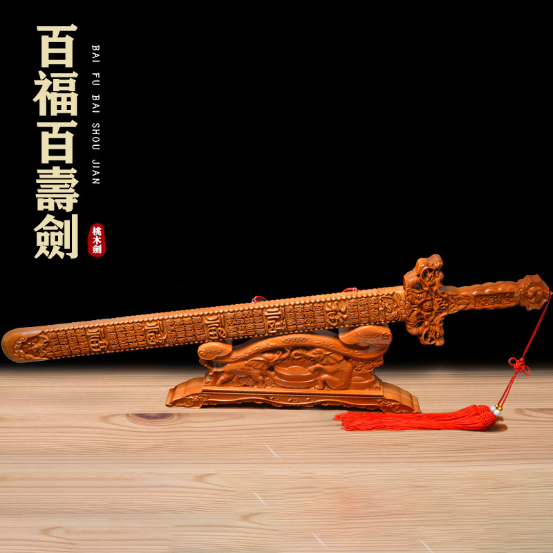 據《山海經》記載:夸父逐日一直追趕到太陽落下的地方,他幹到口渴想喝水,在黃河、渭水的水不夠喝之後又去了北方的大湖喝水,還沒到大湖就半路渴死,遺棄的手杖,化成桃林。在傳統習俗中,天然桃木劍也被認為有鎮宅、納福、辟邪、招財等作用。桃者,为五木之精,亦称仙木!