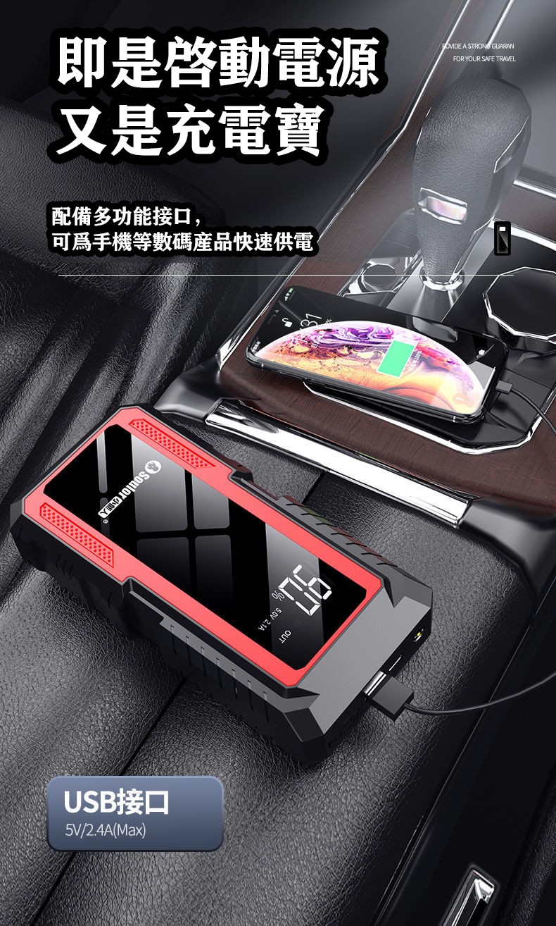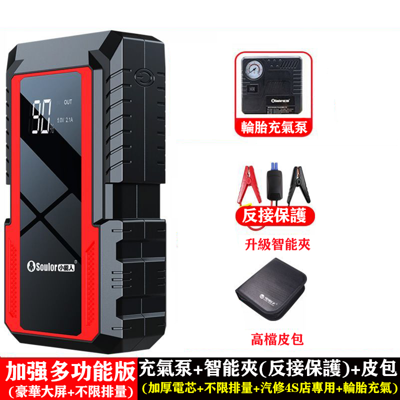 99999毫安【4S店救援+不限車型】(搭電寶+智能夾+氣泵+快充+皮包)