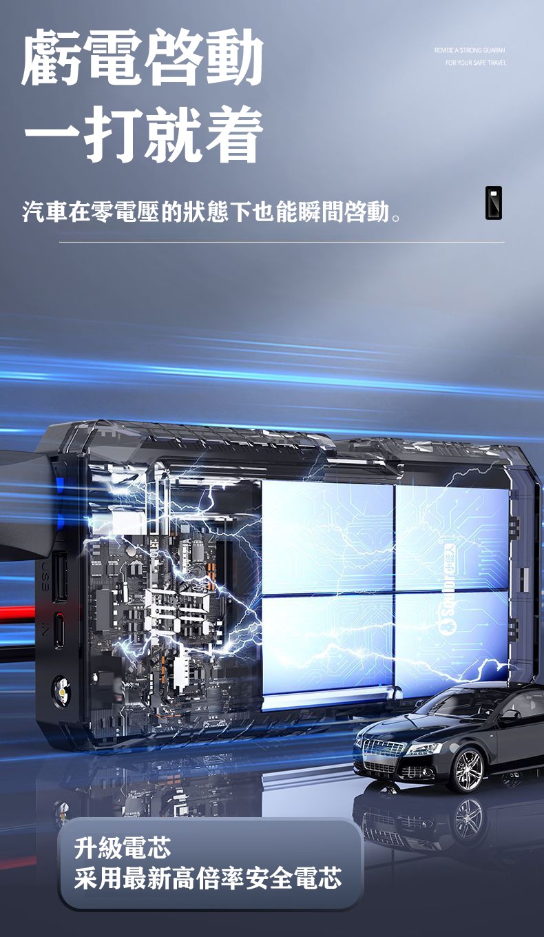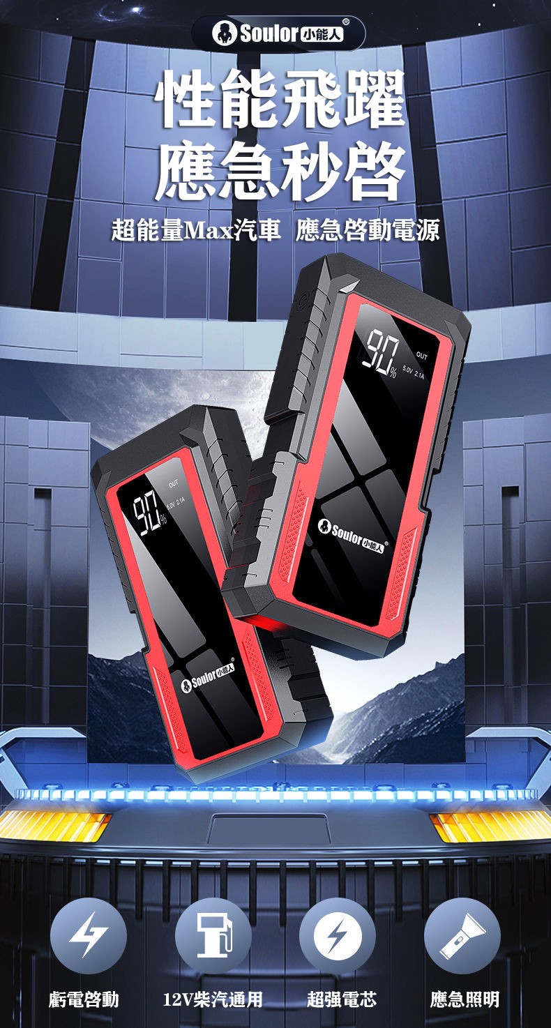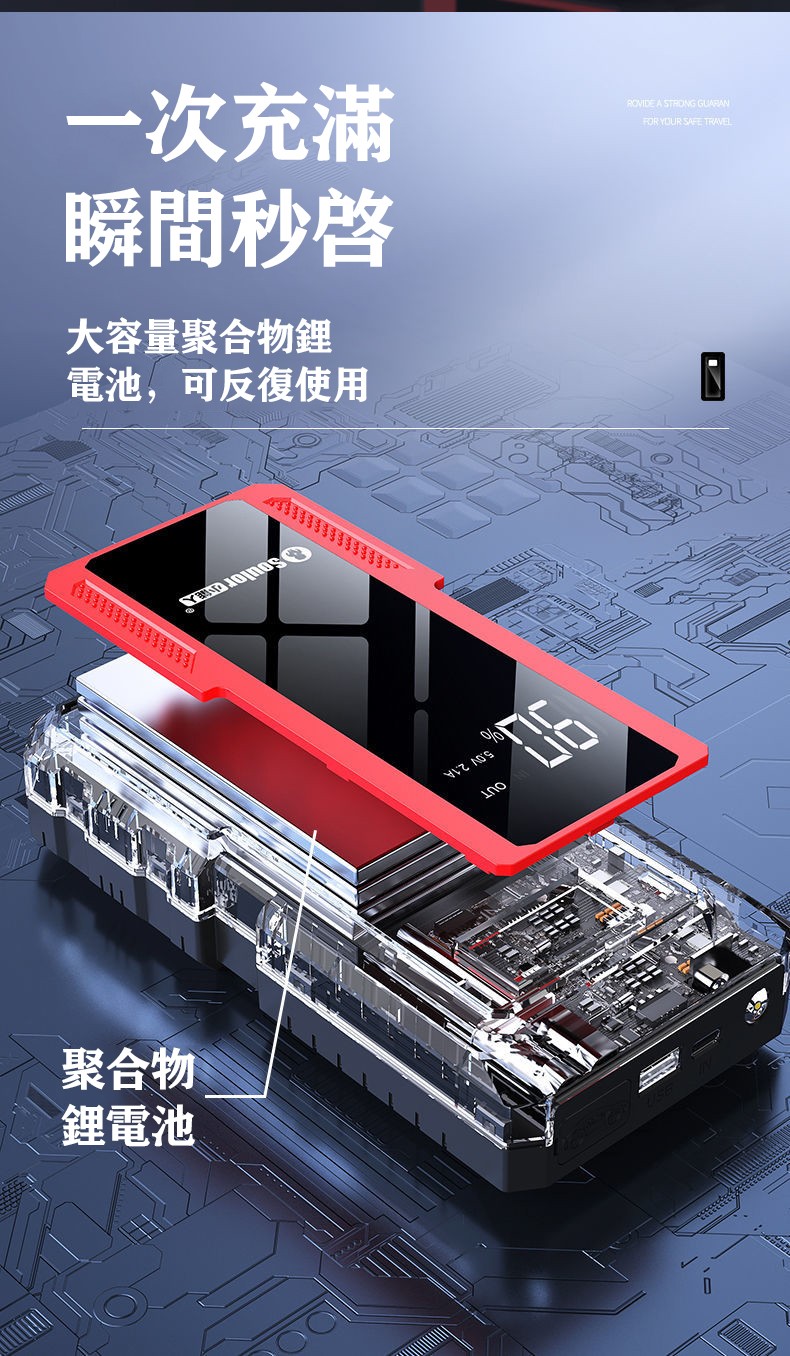 99800毫安【加強版】秒啟大排量車+柴電雙啟(搭電寶+加粗夾+手機快充+照明)