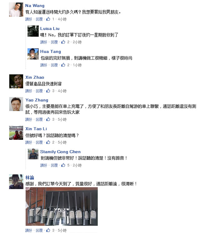 本款對講機一上市就遭到臉書網友們的瘋狂訂購